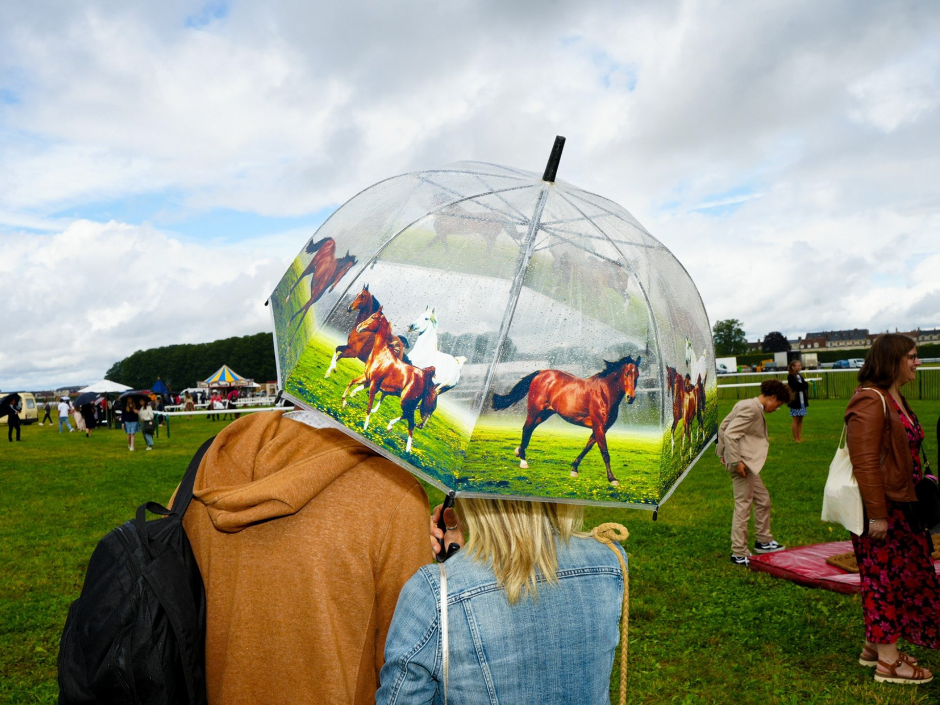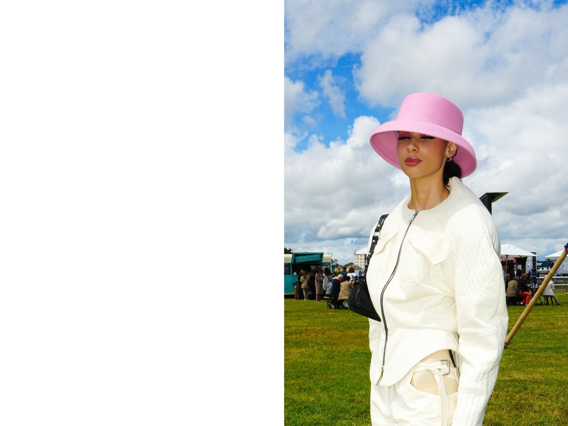 À travers les détails et des scènes décalées, ce travail montre comment les courses équestres représentent un temps fort pour marquer sa position sociale à travers l’hexis corporel. Les personnages rocambolesques interagissent sur des pelouses vertes chatoyantes tranchant avec les cieux nuageux. Ces scènes de vie picturales ne sont pas sans rappeler les peintures impressionnistes. Du 19e siècle au 21e siècle, le théâtre mondain continue de se dérouler autant sur la piste que dans les coulisses.